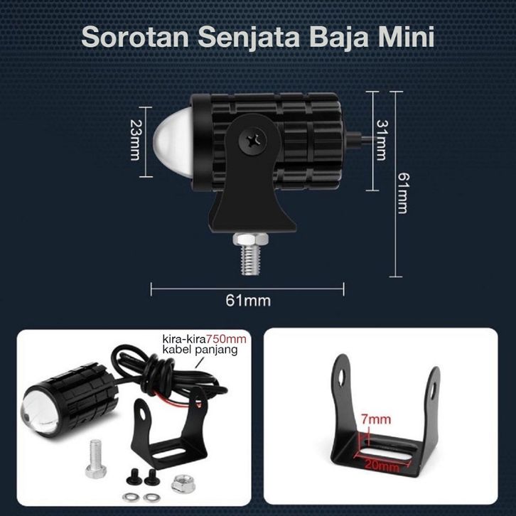 [Star] Acroder Lampu Tembak Motor Laser Led Mini 2 Warna Putih Kuning Super Terang Aluminium