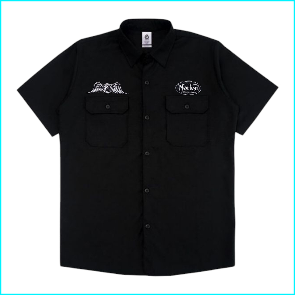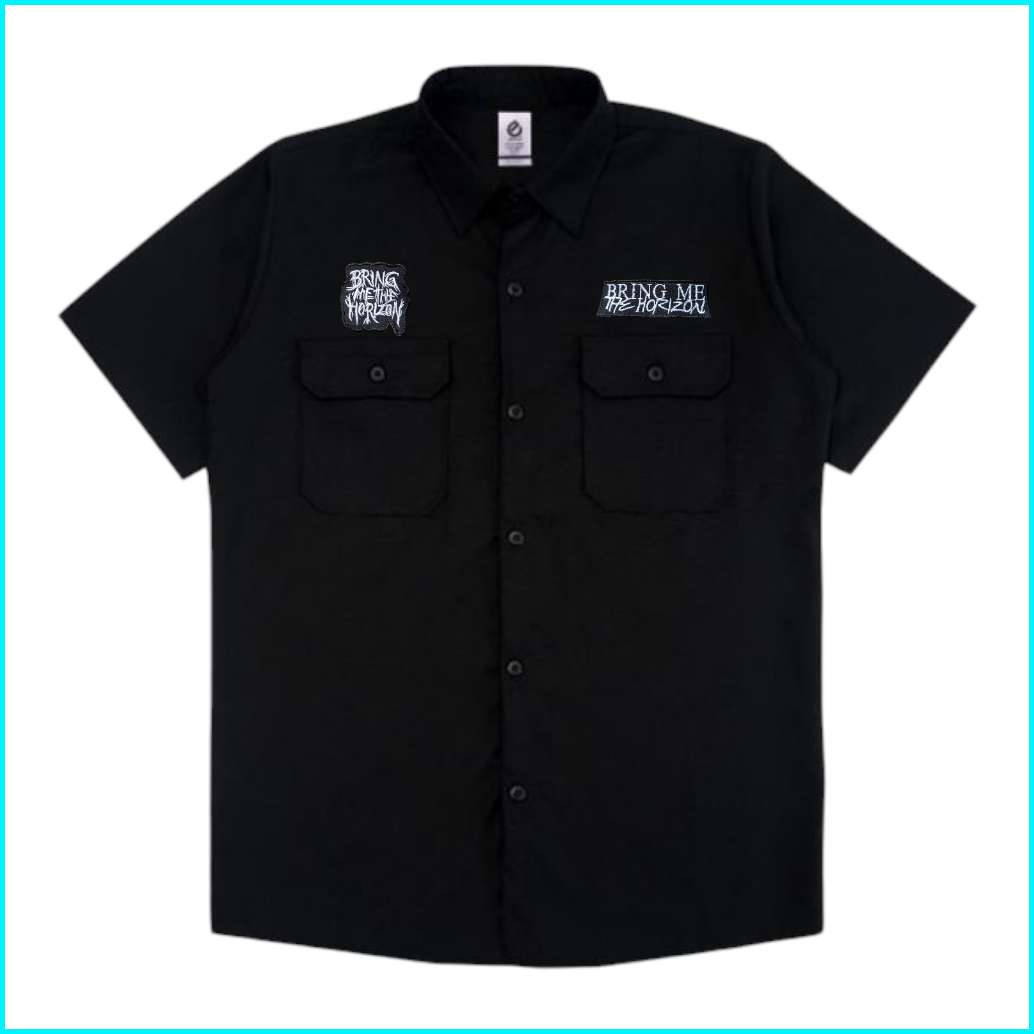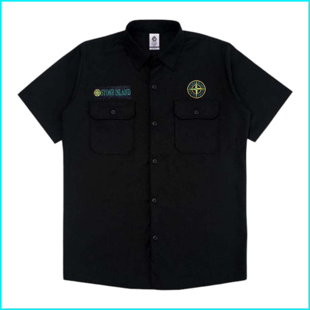 Kemeja Pria Workshirt Top Man Lengan Pendek Casual Bordir Skena Hitz Tebal Kerjal