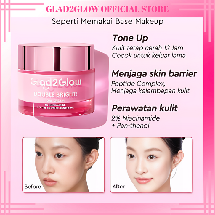 [Mall] Glad 2 Glow Official Glad2Glow Day Cream Double Bright Tone Up Cerah Moisturizer Brightening [NEW LAUNCH]