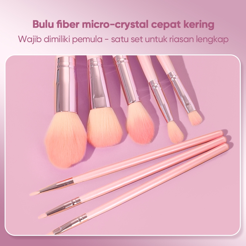 Freebies SALSNOW 8-Count Makeup Brush Set Set Kuas Rias Berkualitas Tinggi Set Kuas Portabel Praktis Blush Eyeshadow Fou