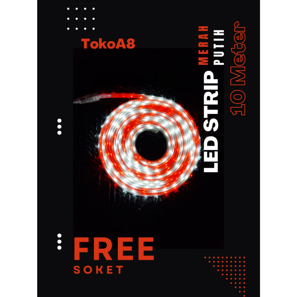 LAMPU LED STRIP SELANG MERAH PUTIH dan RGB 7 METER 220V + ADAPTOR OUTDOOR