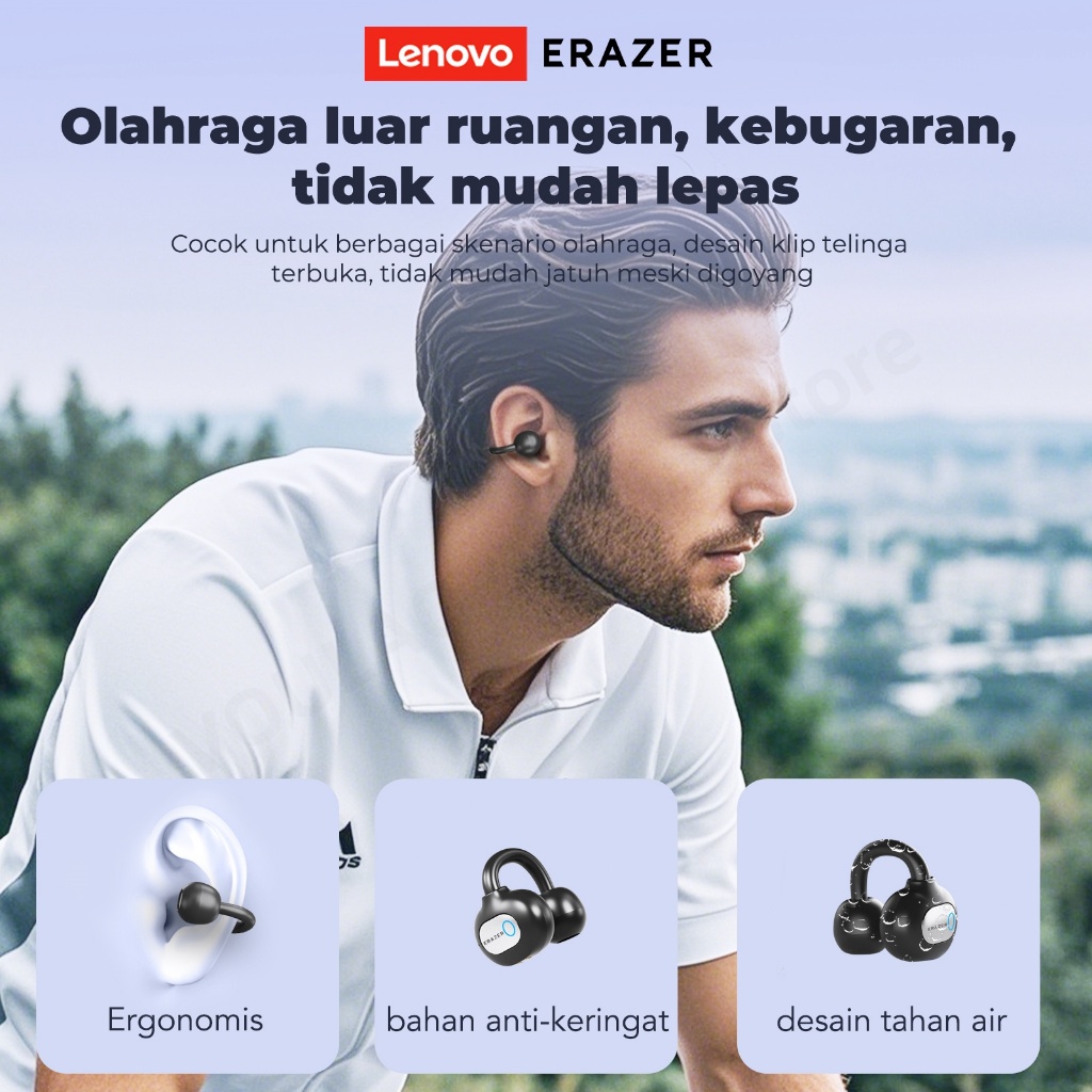 VOULAO X Lenovo ERAZER XF50 Bone Conduction Bluetooth V6.0 Wireless Sports Headphone Dengan Stereo Bernama-Perairan