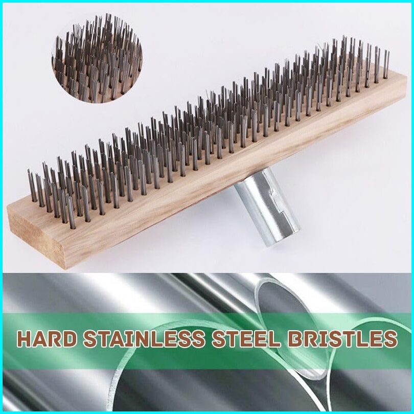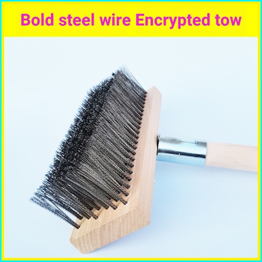 Sikat Gosok Lantai Kawat Baja Tahan Karat Dengan Pegangan Sikat Bulu Kaku Untuk Taman Sapu Lumut