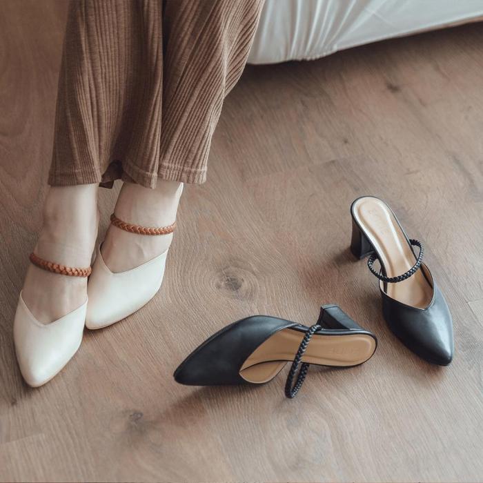 DP 0 ZODE CECILIA HEELSSEPATU HAK TINGGI WANITASHOES MULESHAK 7 CMBLACK CREAM ARMY BLUE MAROONBLUE 38