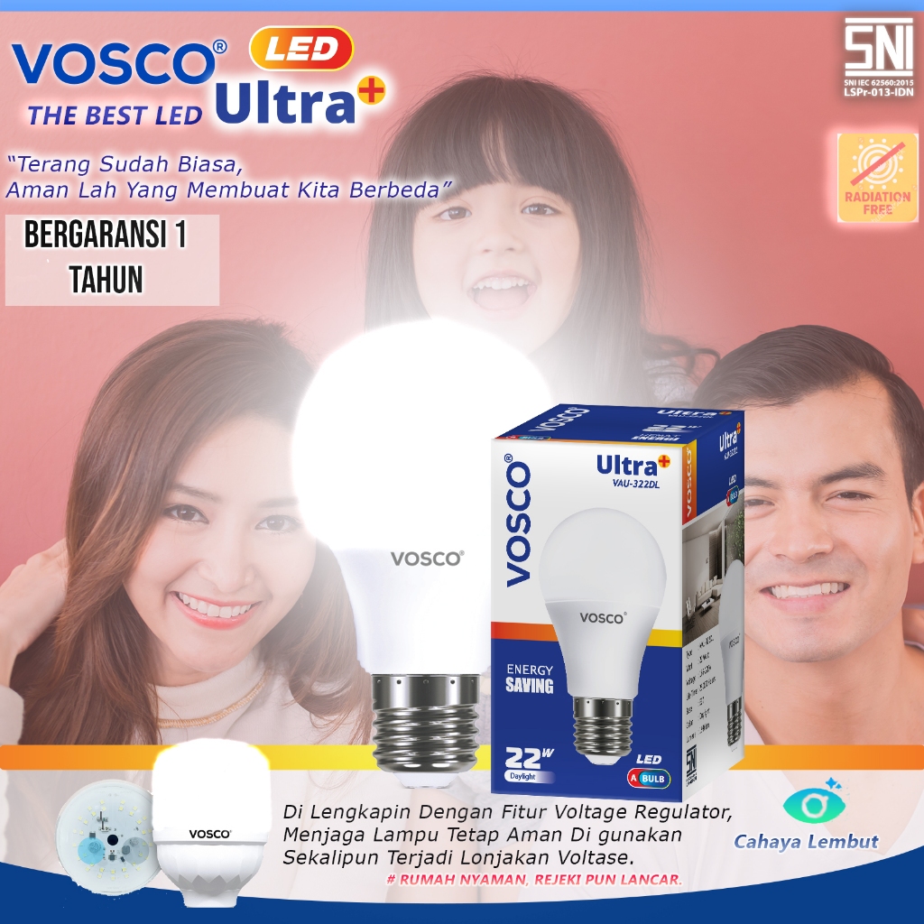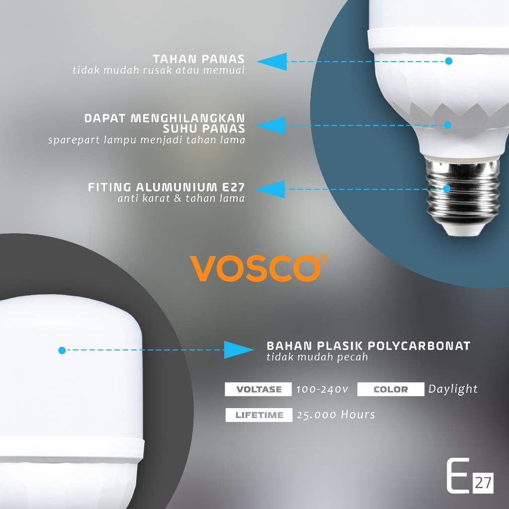 LAMPU LED VOSCO BERGARANSI 5 Hingga 22 WATT CAHAYA PUTIH BERSIH, ULTRA TERANG, AWET 30000 JAM SNI
