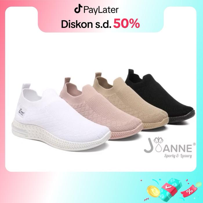 DP 0 JOANNECASUAL FLYKNIT SNEAKERS SHOES OLAHRAGA WANITA JN8885 BLACK PINKWHITE 36