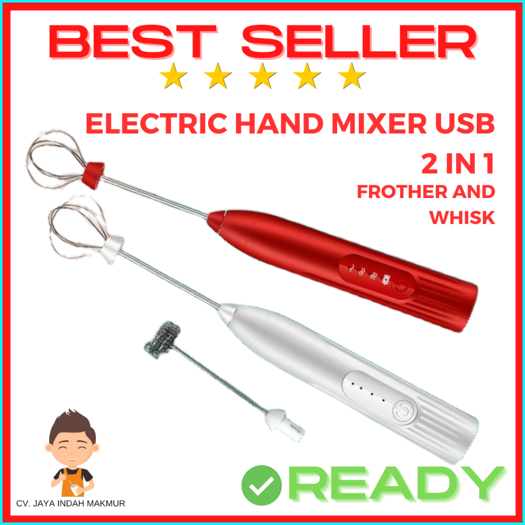 Mixer Electric Hand Pengaduk Kopi Susu Telur Kue Portable Kitchen Whisk 2in1 Milk Frother