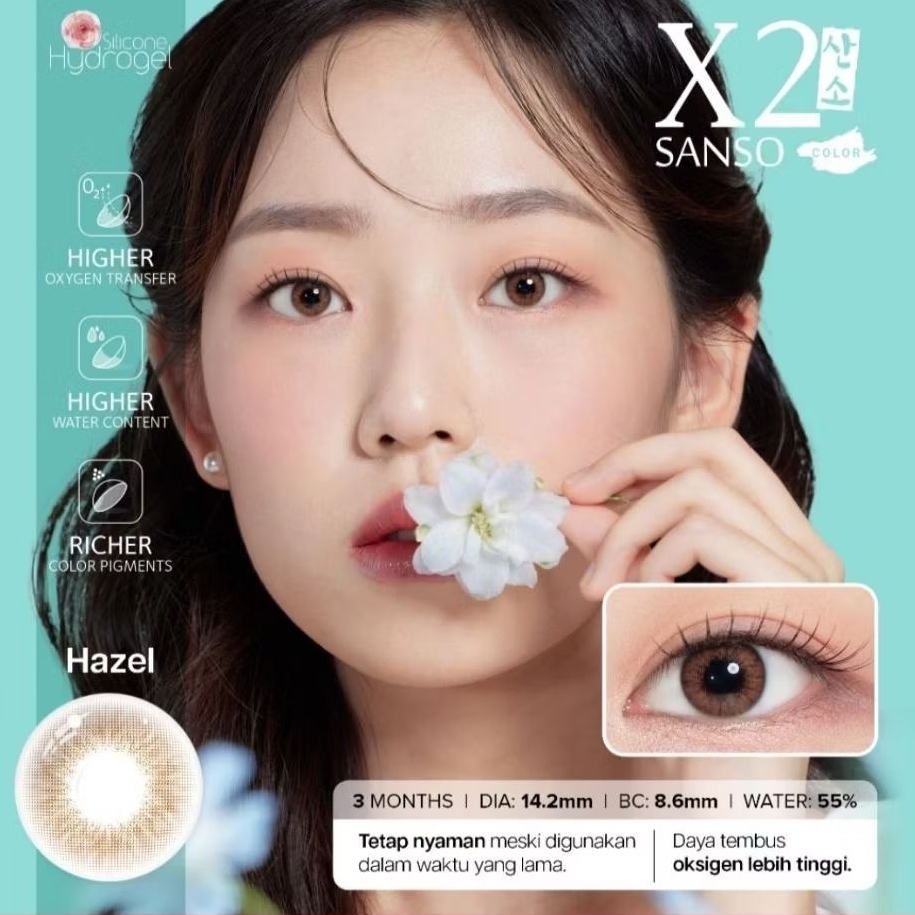 Softlens NEW X2 SANSO BEIGE HAZEL(14.2m)Silicone Hydrogel(normal)to -10 Minus Sensitif Eye Kemenkes