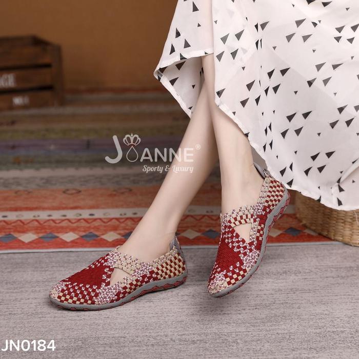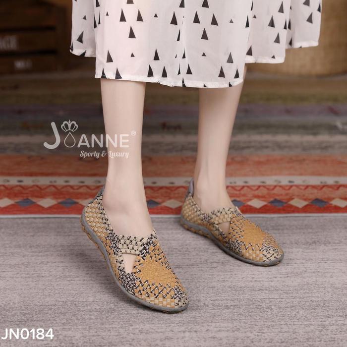 DP 0 JOANNE FLAT RAJUT KNITS SHOES WANITA JN0184 BLACKWHITE 36
