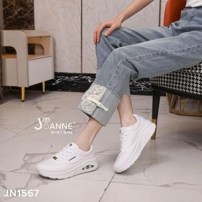 DP 0 JOANNE LEATHER CASUAL SPORT SNEAKERS SHOES SEPATU WANITA JN1567WHITE 36