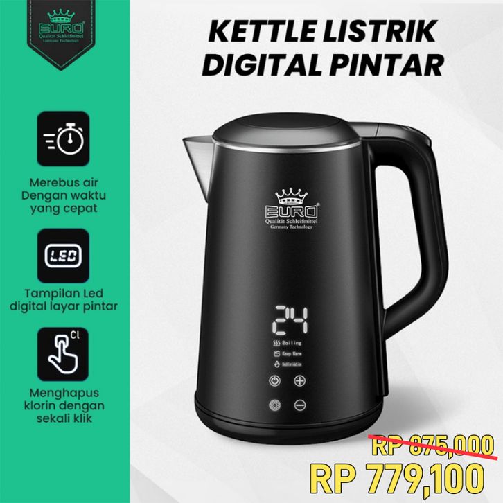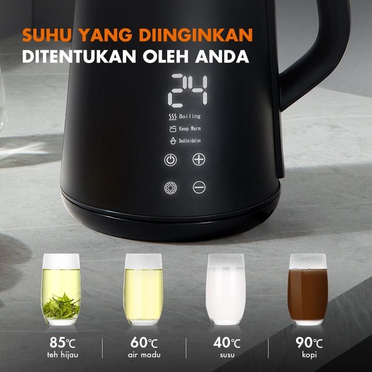 Teko Listrik Stainless 1.6 Liter Kettle Layar Sentuh 1500w - Pemanas Air Stainless Steel Electric Kettle Digital Screen