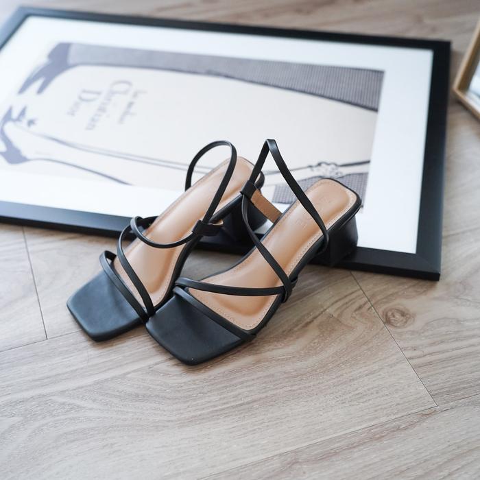 DP 0 ZODE ARSYANA HEELSSANDAL HAK TINGGI 5 CMWOMAN SHOESBLACK CREAM & WHITE WANITABLACK 37