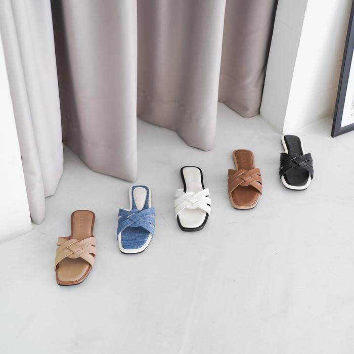 DP 0 ZODE KHESYA SANDAL WANITA TANPA HAKBLACK BEIGE BROWN DENIM & WHITEBLACK 36