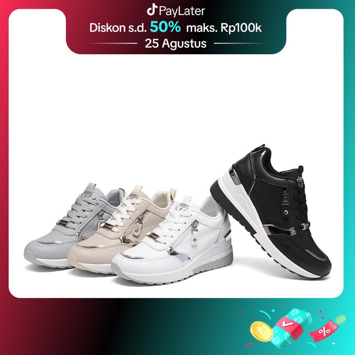 DP 0 JOANNE CASUAL HIGHSOLE SNEAKERS SHOES WANITA JN527 BLACKBEIGE 36