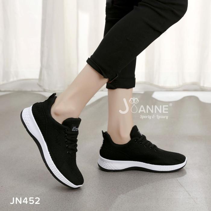 DP 0 JOANNE CASUAL FLYKNIT SPORT SNEAKERS SHOES WANITA JN452 BLACKWHITE 36