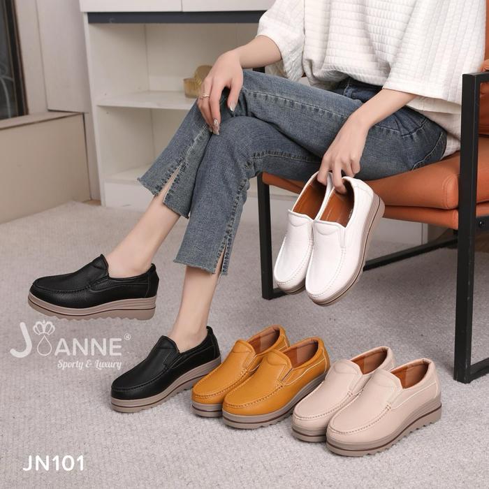 DP 0 JOANNE COMFY WEDGES SNEAKERS SHOES WANITA JN101 BLACKCREAM 36