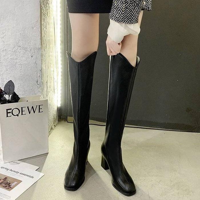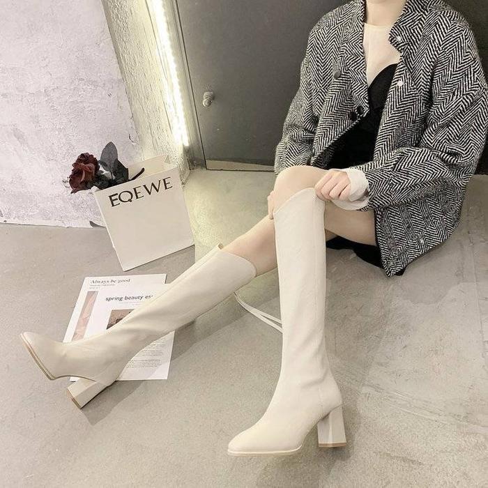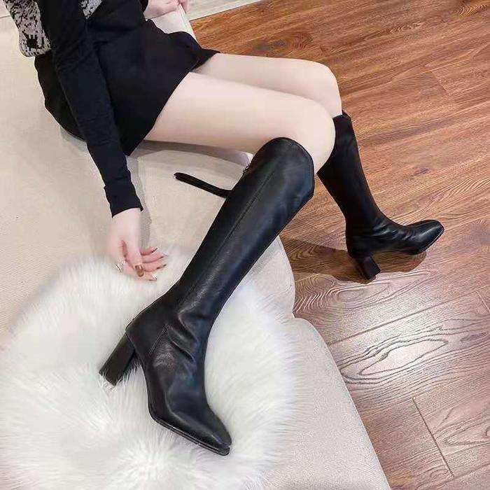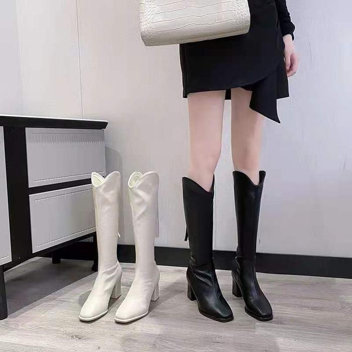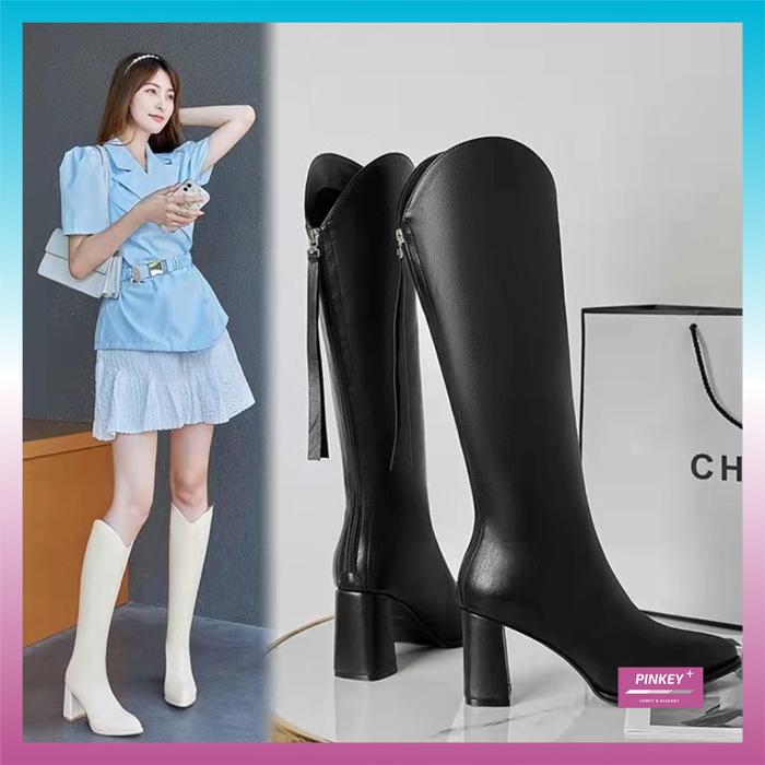 DP 0 PINKEY P102 RESTOCK SEPATU LONG BOOTS FLAT HITAM SHOES WANITA KERJABEIGE 36