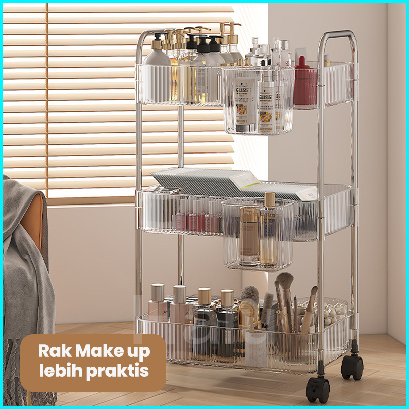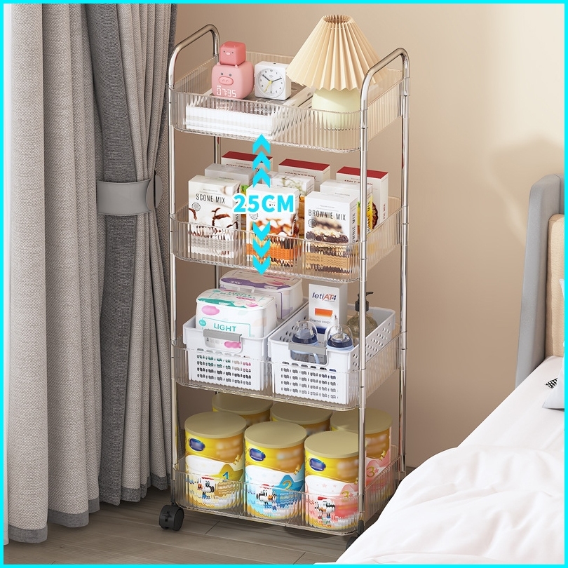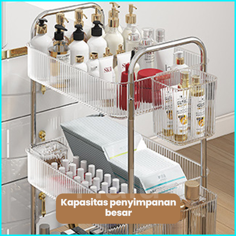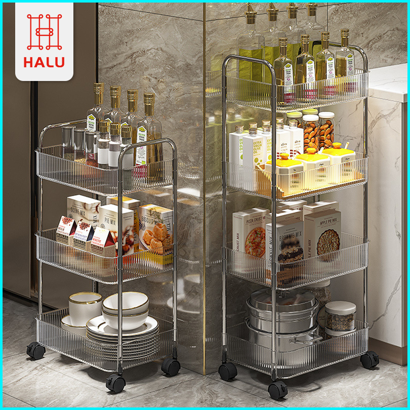 Halu Rak Troli Susun Rak Troli Dapur Dorong Serbaguna Rak Salon Kamar Mandi Removable Hrk515