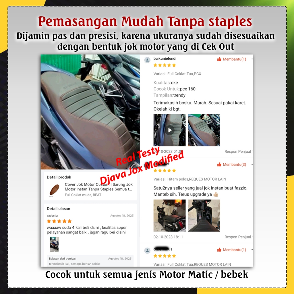 Sarung jok instan CAFERACER |cover jok | kulit jok | Tutup jok honda yamaha scoopy nmax vario pcx