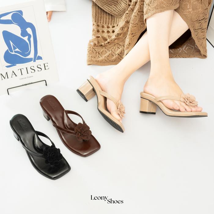 DP 0 LEONYCYNTIA HEELS JEPIT BUNGA WANITASANDAL TINGGI HAK TAHU 5 CMHITAM 37