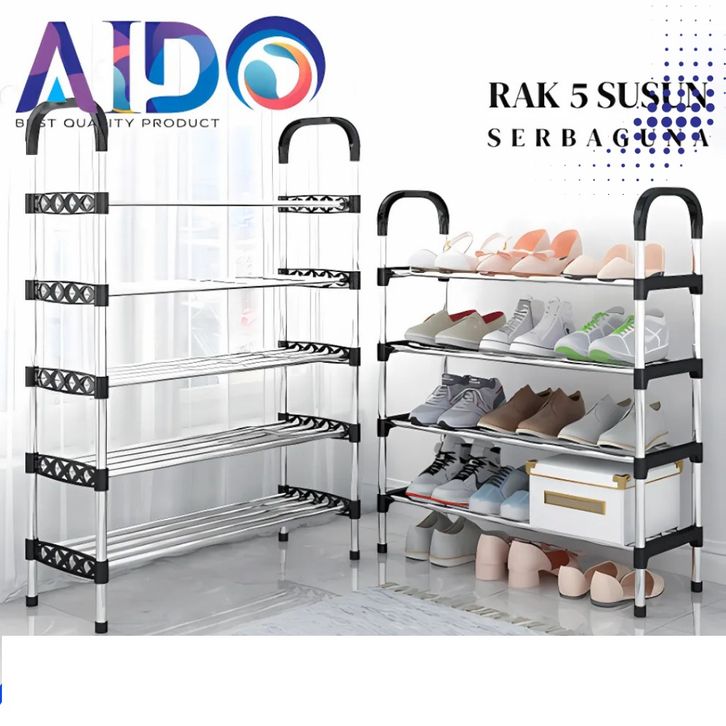 Rak Sepatu Estetik / Rak sepatu 5 susun serbaguna dengan gantungan payung / rak serbaguna AIDO