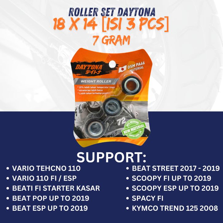PROMO GRATIS ONGKIR✔️ROLLER DAYTONA BEAT FI ESP 110 BEAT POP VARIO 110 SCOOPY SPACY FI 5GR SD 13GR PER 3 BUTIR
