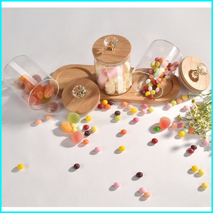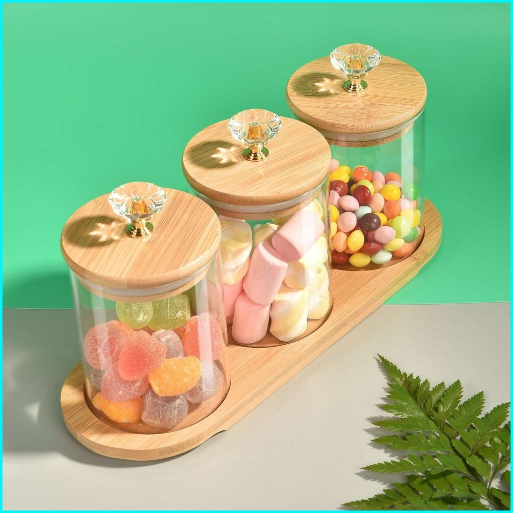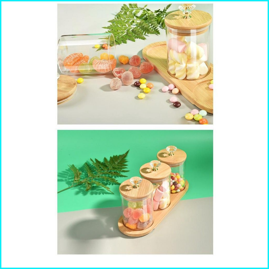Ms Tempat Bumbu Candy Jar Toples Kaca Diamond 3in1 Dengan Nampan Kayu