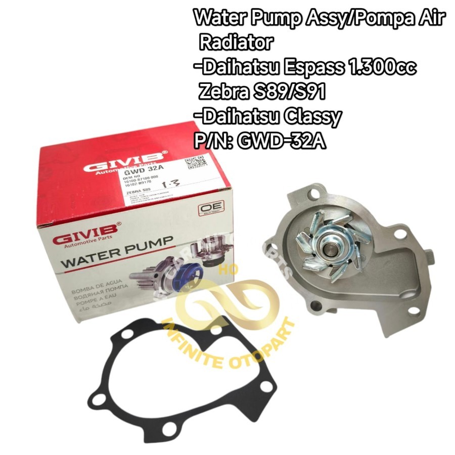 WATER PUMP ASSY POMPA AIR DAIHATSU ZEBRA S89 S91 ESPASS 1.3 CLASSY