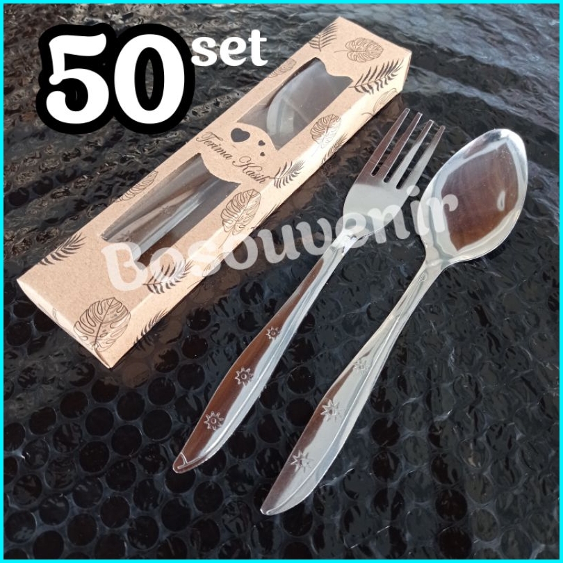 Isi 50 Set Sendok Garpu Stainless Bintang Box Rustic Souvenir Pernikahan