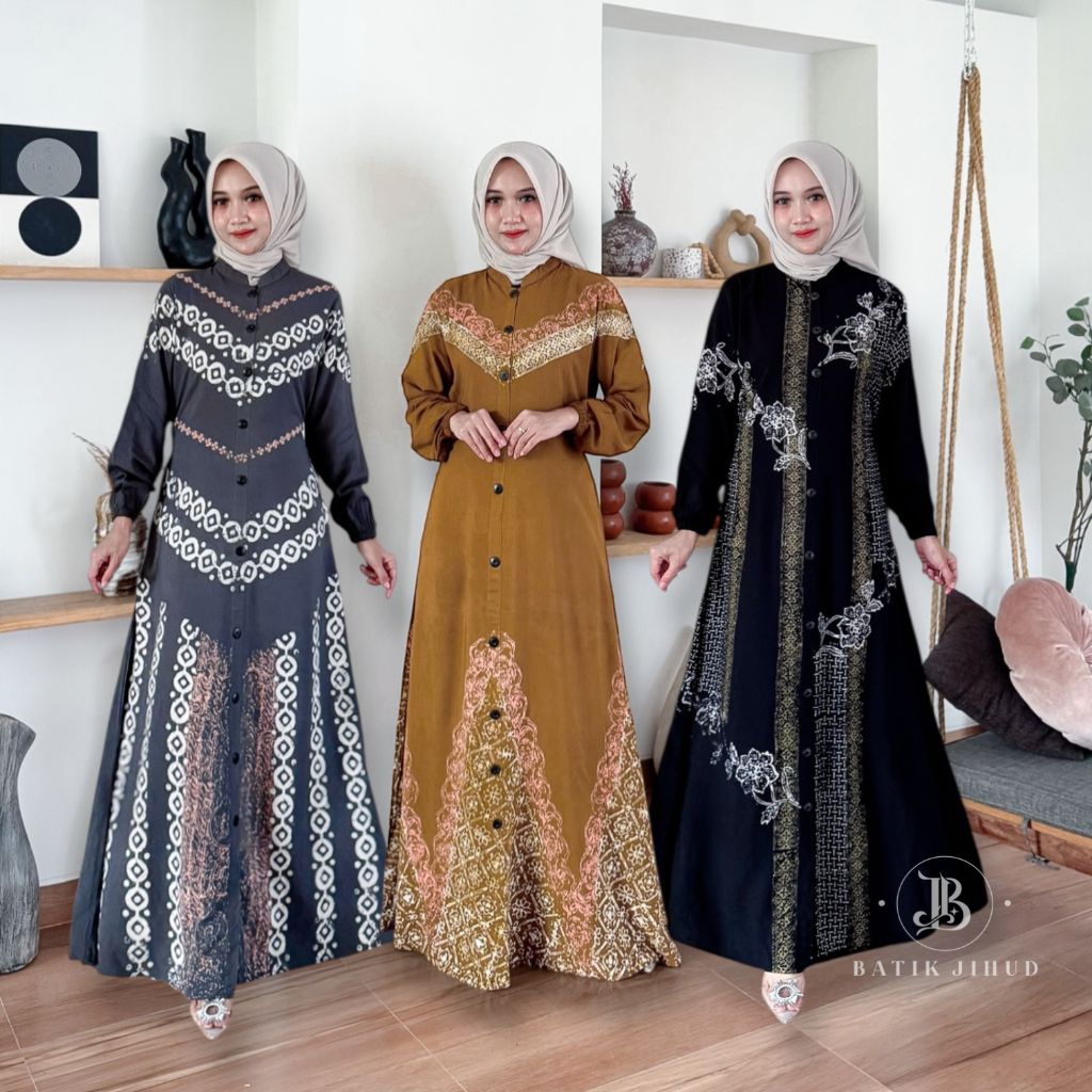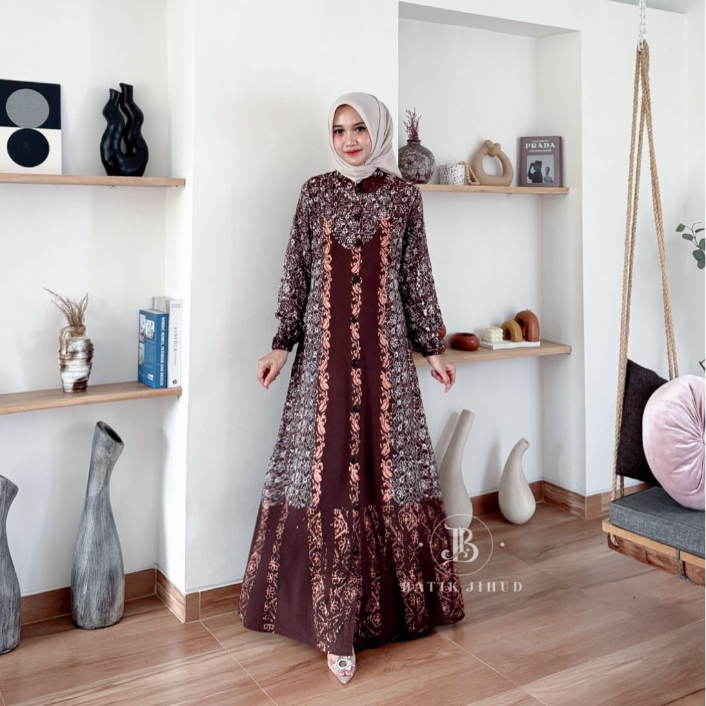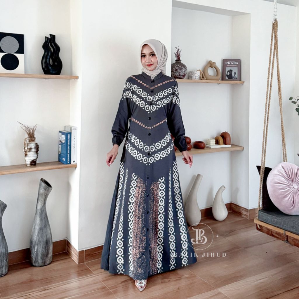 Batik Jihud - Gamis Cap Twill Rayon Terbaru Homedress Busui Kancing Jumbo Syar'i Premium
