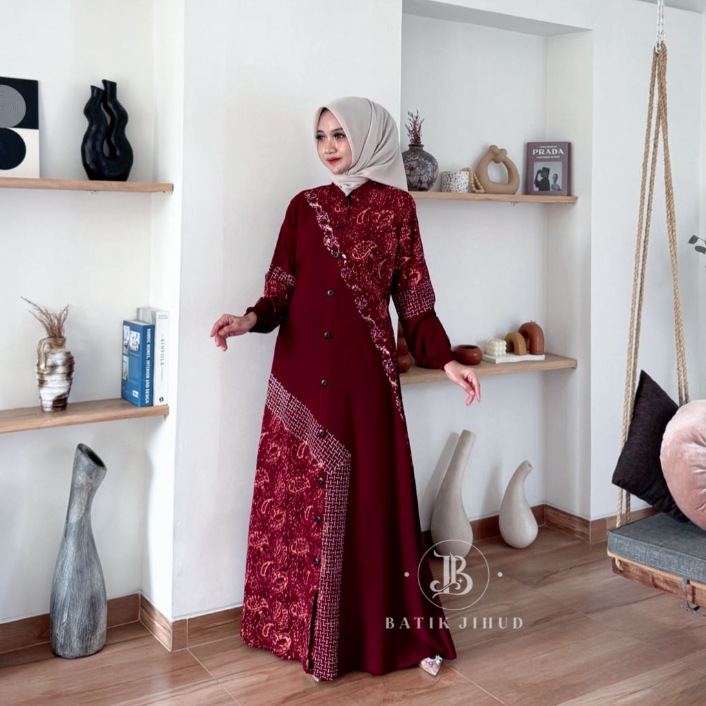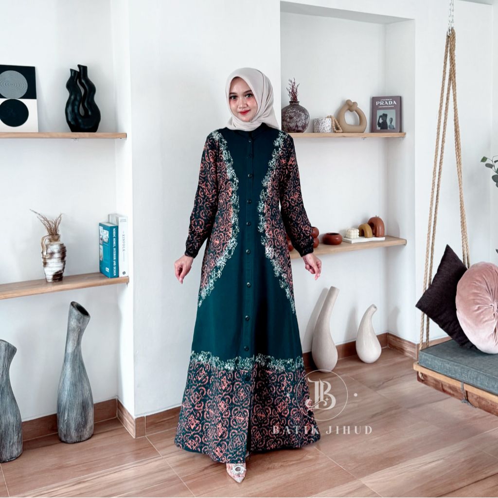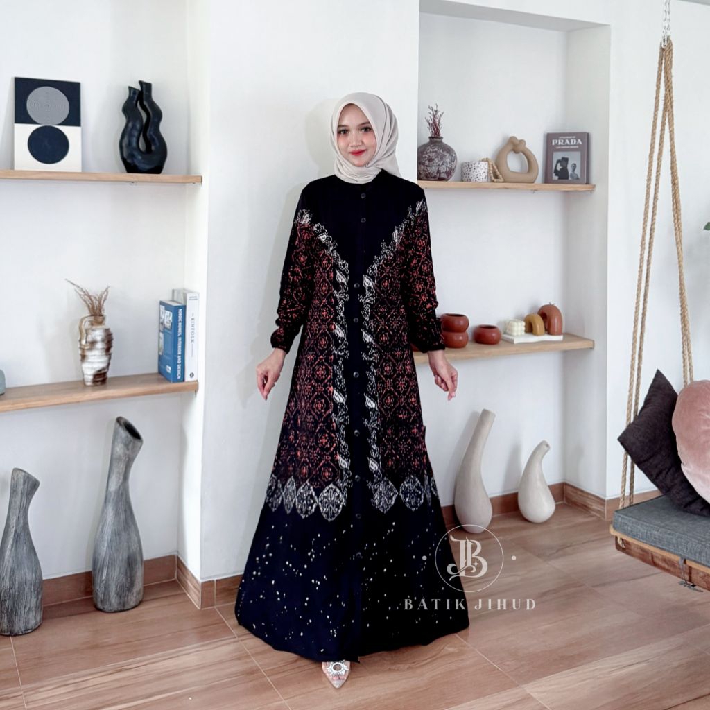 Batik Jihud - Gamis Cap Twill Rayon Terbaru Homedress Busui Kancing Jumbo Syar'i Premium