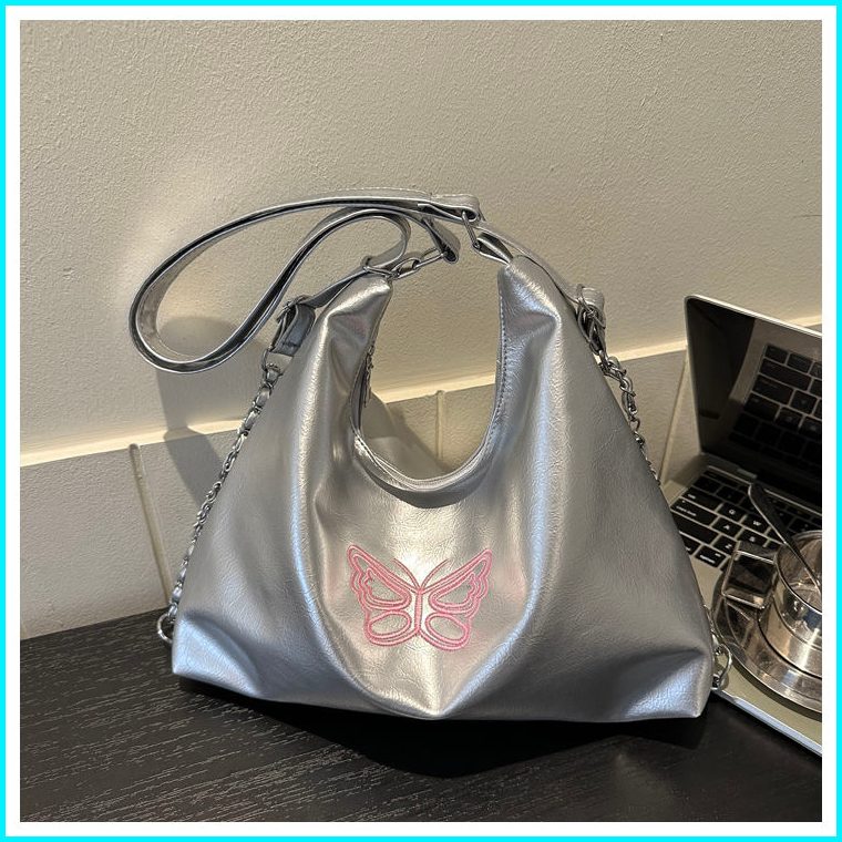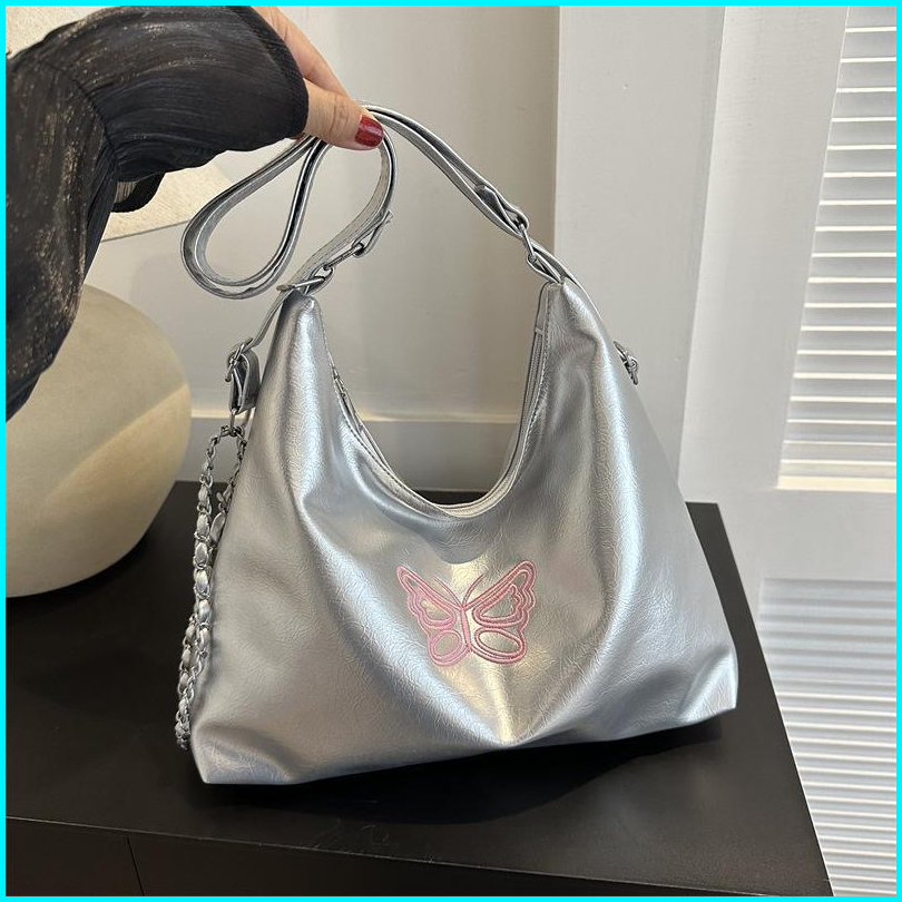 Ransel Wanita Kapasitas Besar Permukaan Lembut Kasual Ransel Gaya Baru Tas Ember Bahu Serbaguna Kupu-kupu Bordir Modis