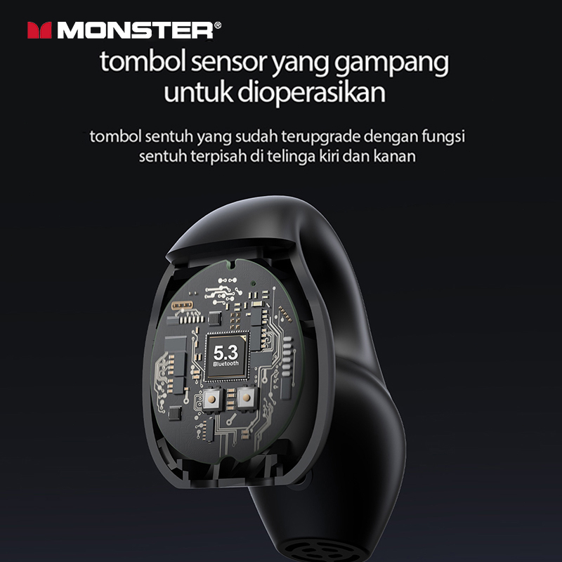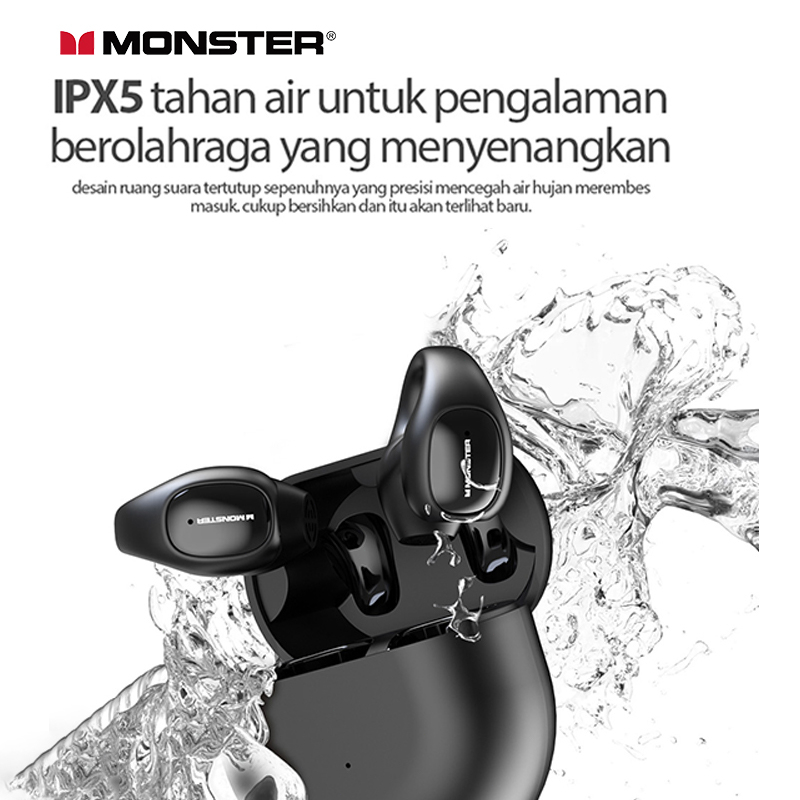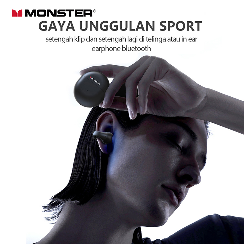 Monster Open Ear 200 Bone Conductor Wireless Bluetooth 5.3 Headset Dengan Mic Earbuds IPX7 Earphone Tahan Air Headphone