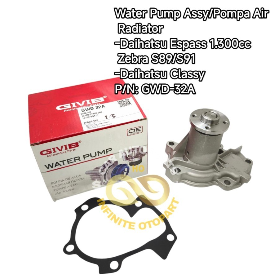 WATER PUMP ASSY POMPA AIR DAIHATSU ZEBRA S89 S91 ESPASS 1.3 CLASSY