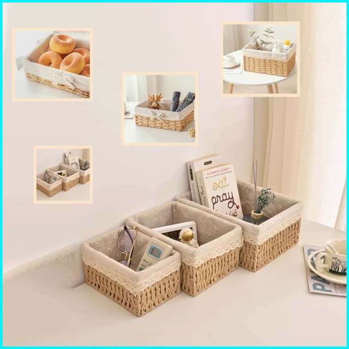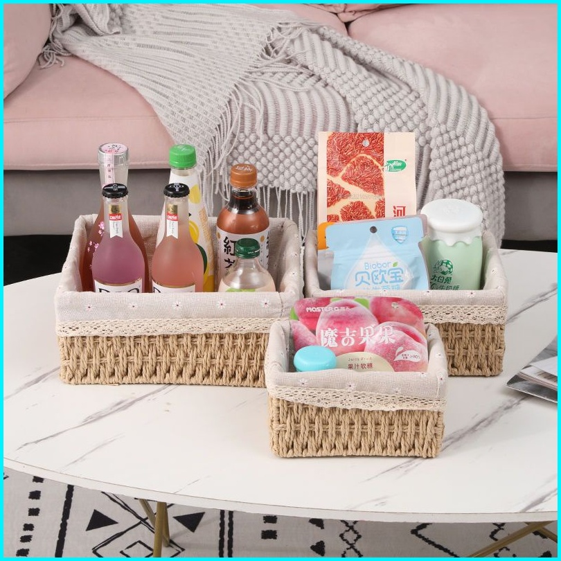 Keranjang Rotan Penyimpanan Box Keranjang Penyimpanan Keranjang Makanan Ringan Kotak Penyimpanan Kosmetik Kotak