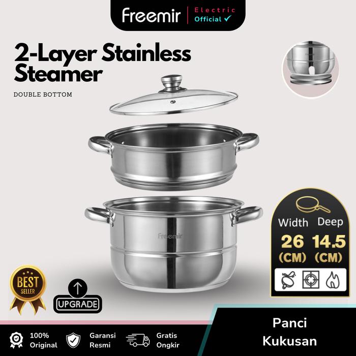 NEW freemir Panci Pengukus Stainless Steel 2 Susun Double Bottom Multifungsi Kitchenware