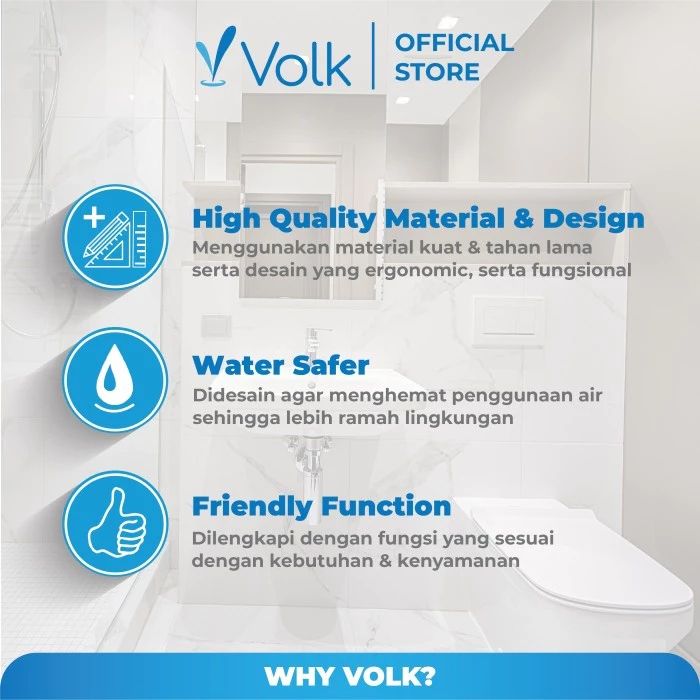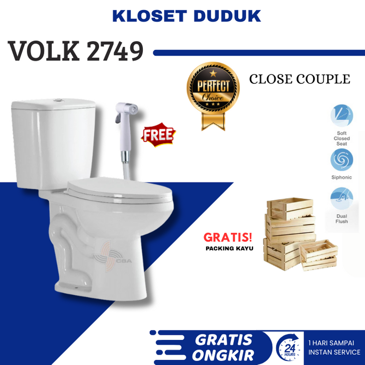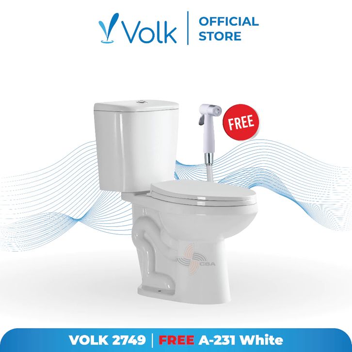 VOLK 2749 TWO PIECE TOILET WHITE + Packing Kayu + Jet Washer V147 White