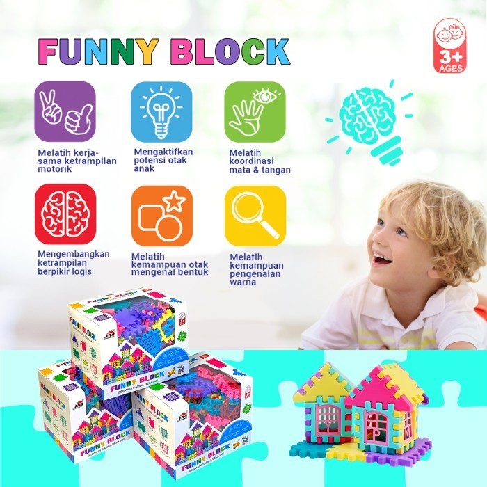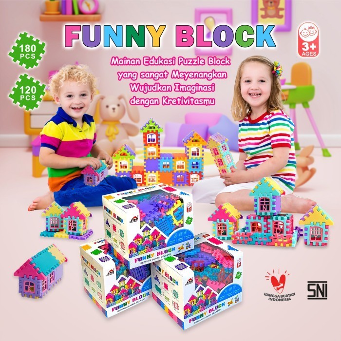 [Mall] BABYTOYS MAINAN EDUKASI ANAK BALOK SUSUN PUZZLE IMAJINASI BENTUK RUMAH 120 PCS BLOCK BLOK
