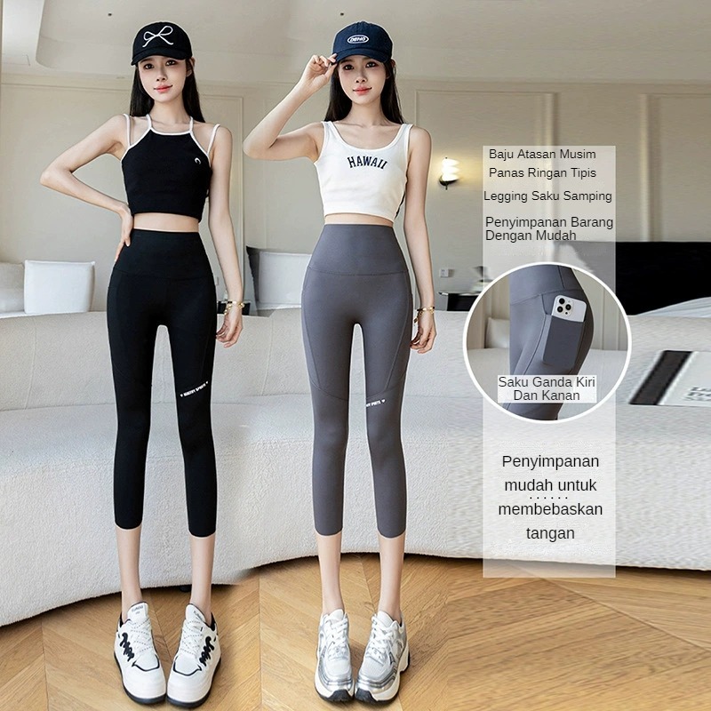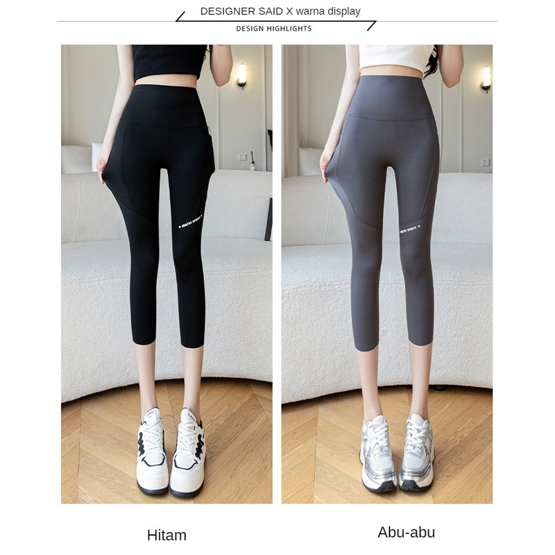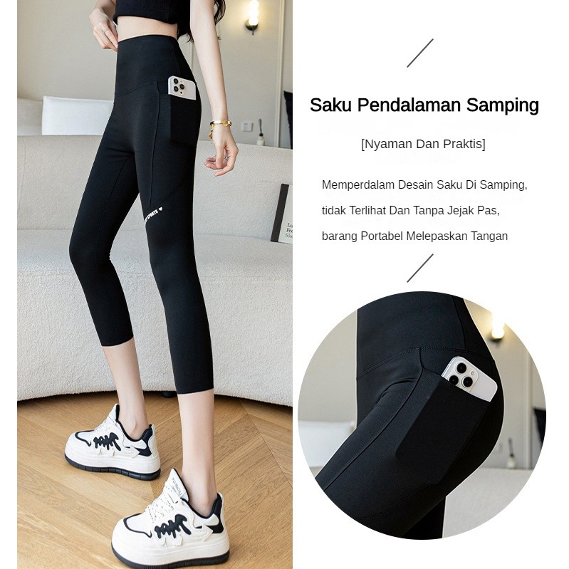 Celana Yoga Wanita Olahraga Legging Sports Gym 7/8 POKET Panjang Jumbo Korean Style High Waist