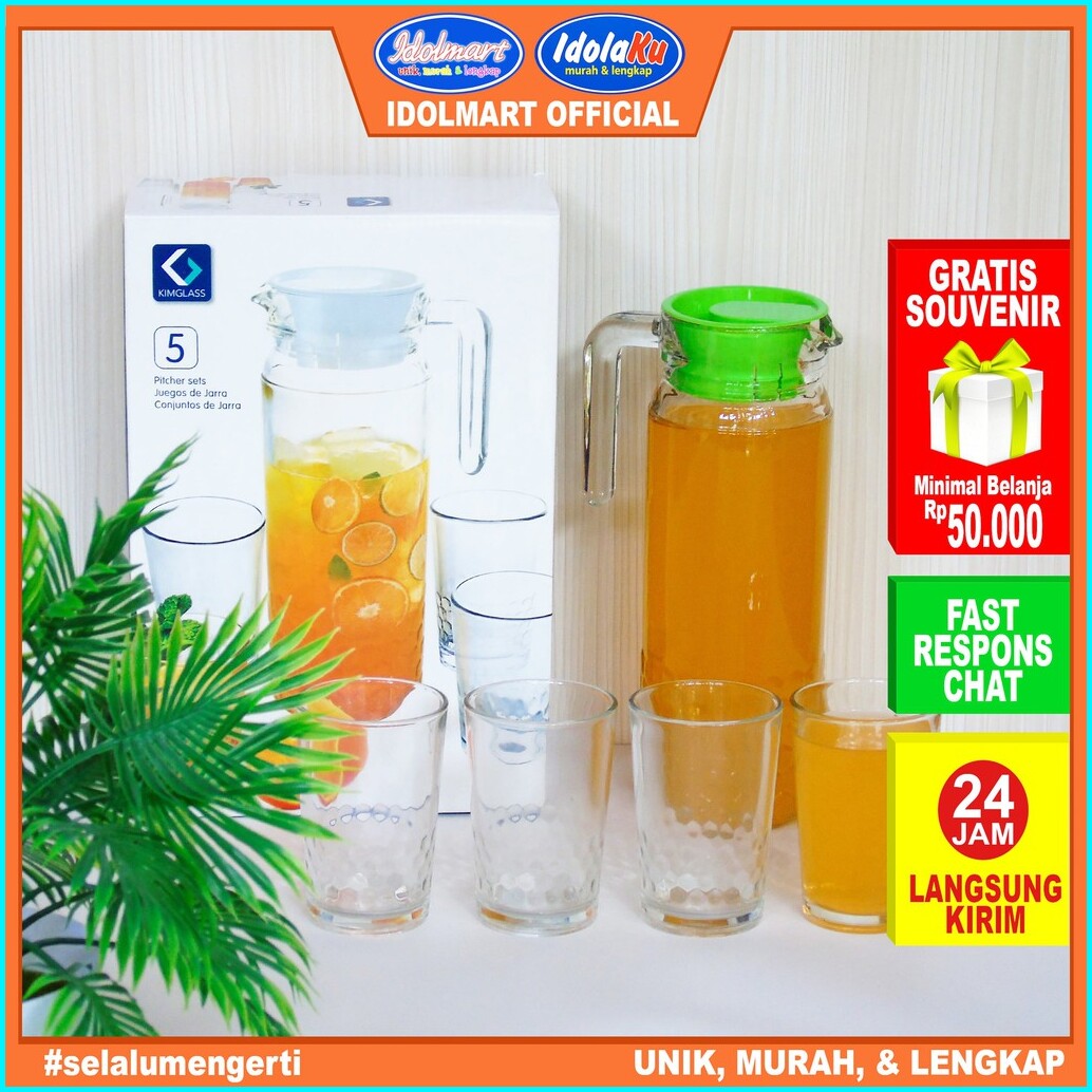 Idolaku Pitcher Teko Set Drink Set Kimglass Isi 5 Pcs