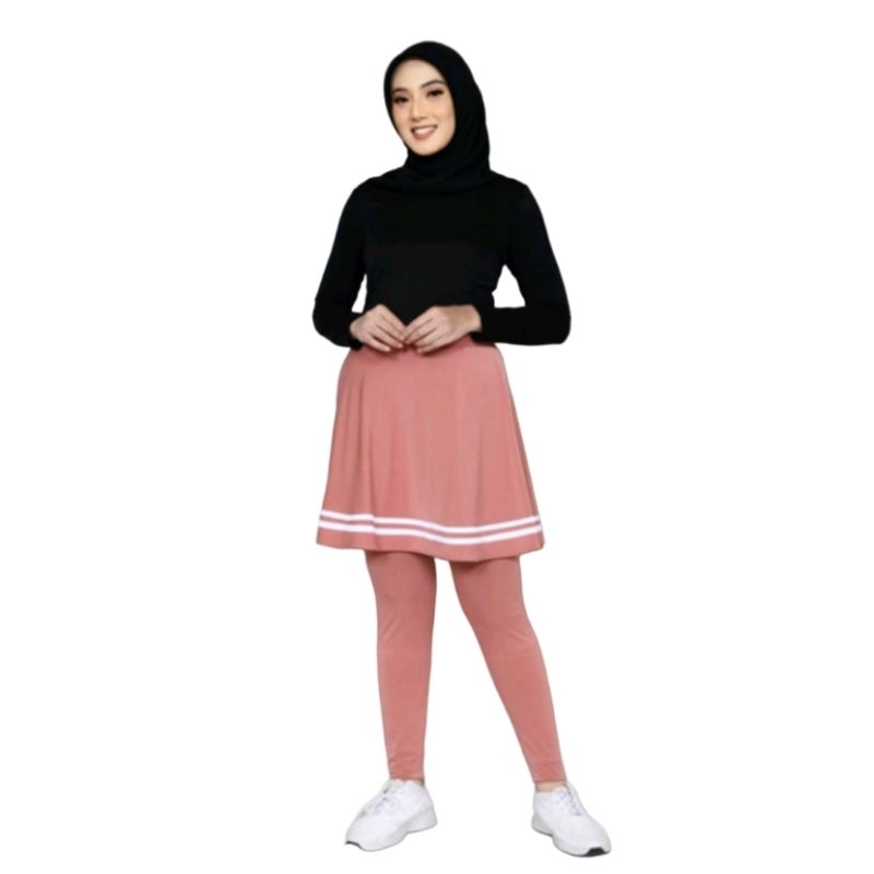 Legging Rok Olahraga Stripe Wanita Skirt Sport Jogging Renang Sepeda Lari Zumba Senam Aerobik