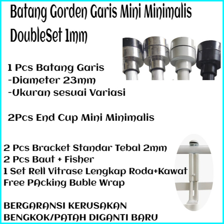 Batang Tiang Besi Gorden Minimalis Double Rel Vitrase 1 2 3 4 Meter Coklat Hitam Putih Full Set