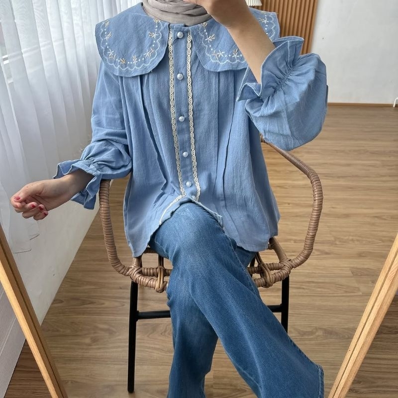 BLOUSE BORDIR BUNGA LINEN /atasan/atasan wanita/wanita/blouse