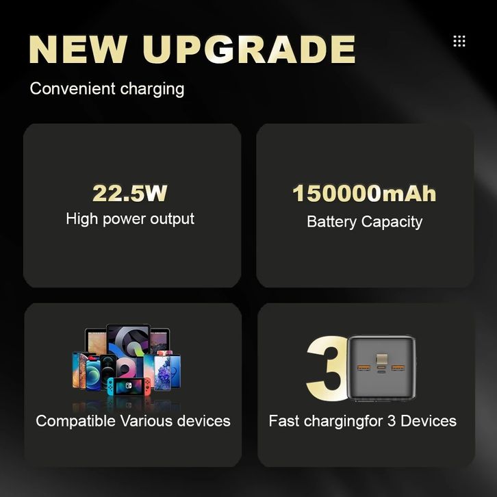 Powerbank 150000mAh Pengisian Cepat 22.5W QC3.0 Tipe-C dengan Daya Tampilan Digital LED