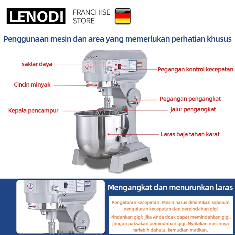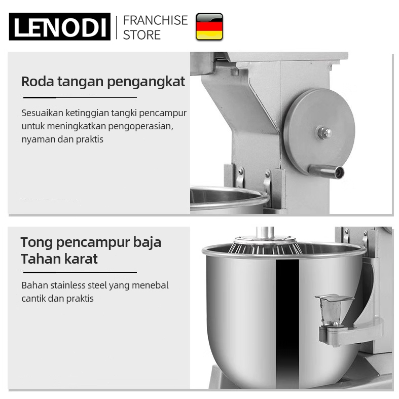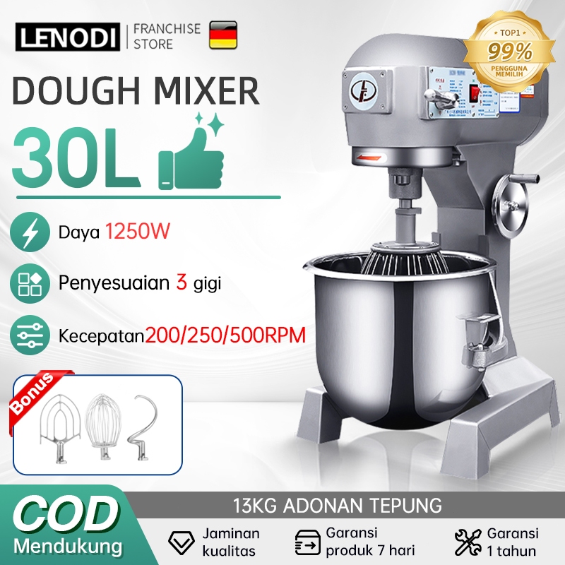 LENODI Mixer Mesin Pengaduk Adonan 30 Liter Mesin Adonan Mixer Kuat Pengocok Telur Mesin Menguleni Tepung Bahan Isi Koki