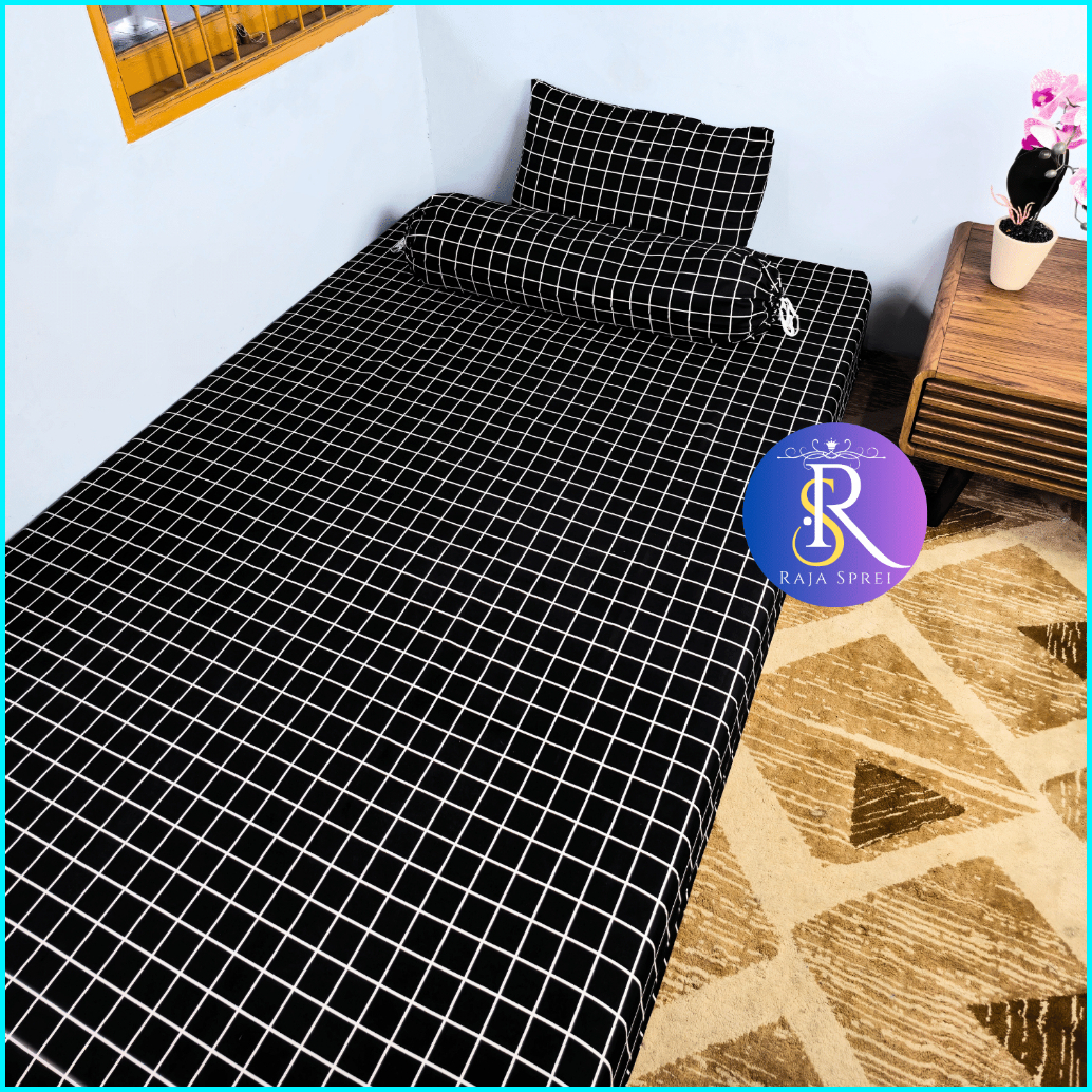 Sprei Single No.4 90x200 Motif Aesthetic Monochrome Kotak Hitam Karakter Bunga Set Bantal Guling