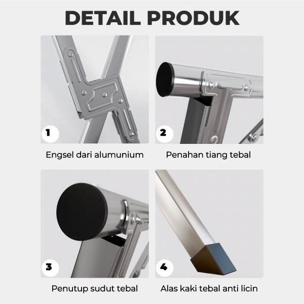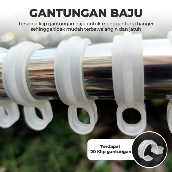 Jemuran Baju Lipat 5 Tiang Jemuran Pakaian Anti Karat Kuat Jemuran Baju Portable Tanpa Instalasi