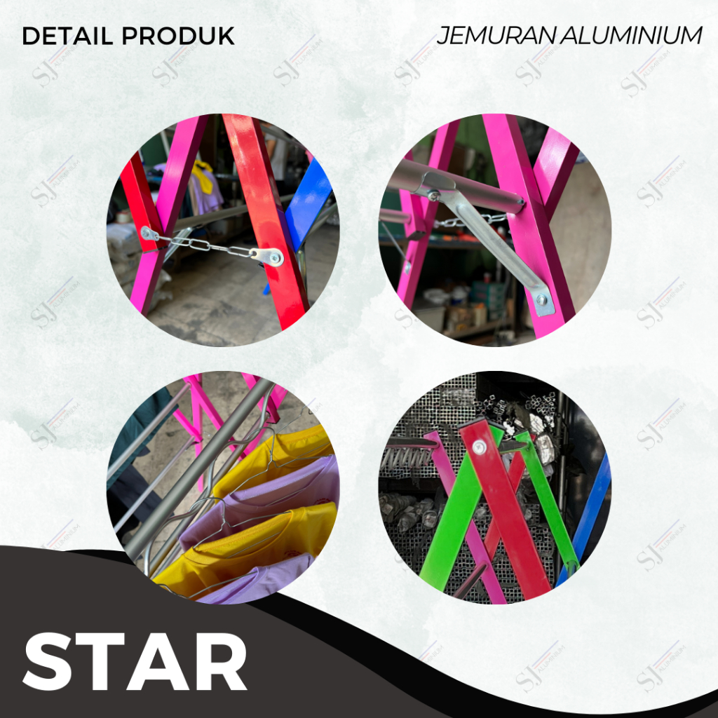 [STAR] Jemuran Aluminium / Jemuran Baju Pakaian Bayi / Rak Handuk Lipat Aluminium Warna - 135 CM