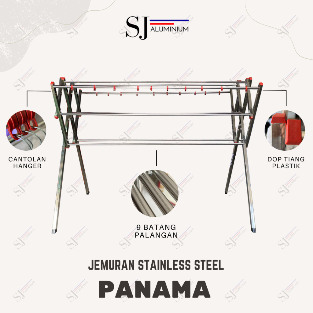 PANAMA - Jemuran Stainless Steel Jumbo 180 CM / Jemuran Baju & Pakaian & Handuk Lipat / Palang 9 - 180 CM / 1,8 Meter