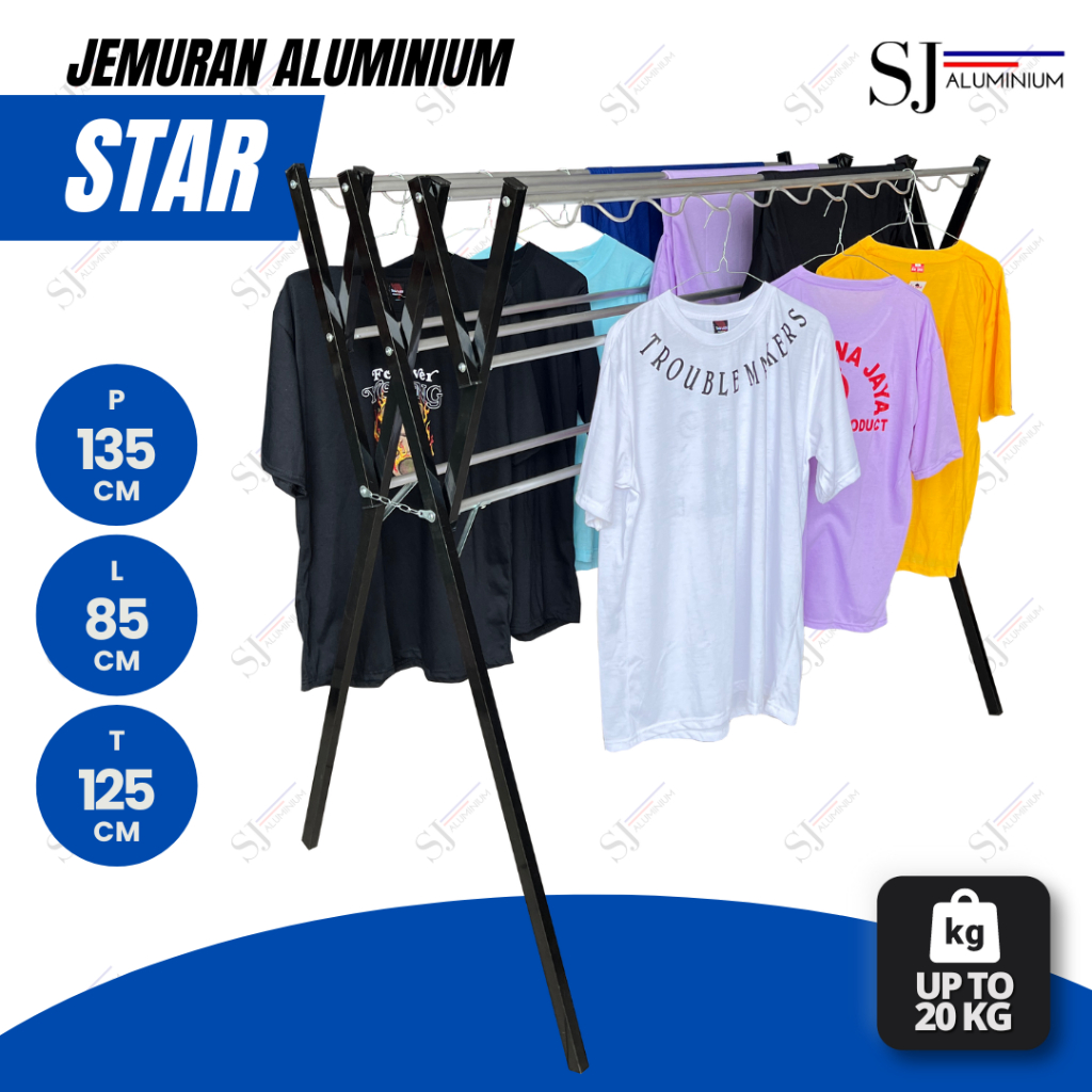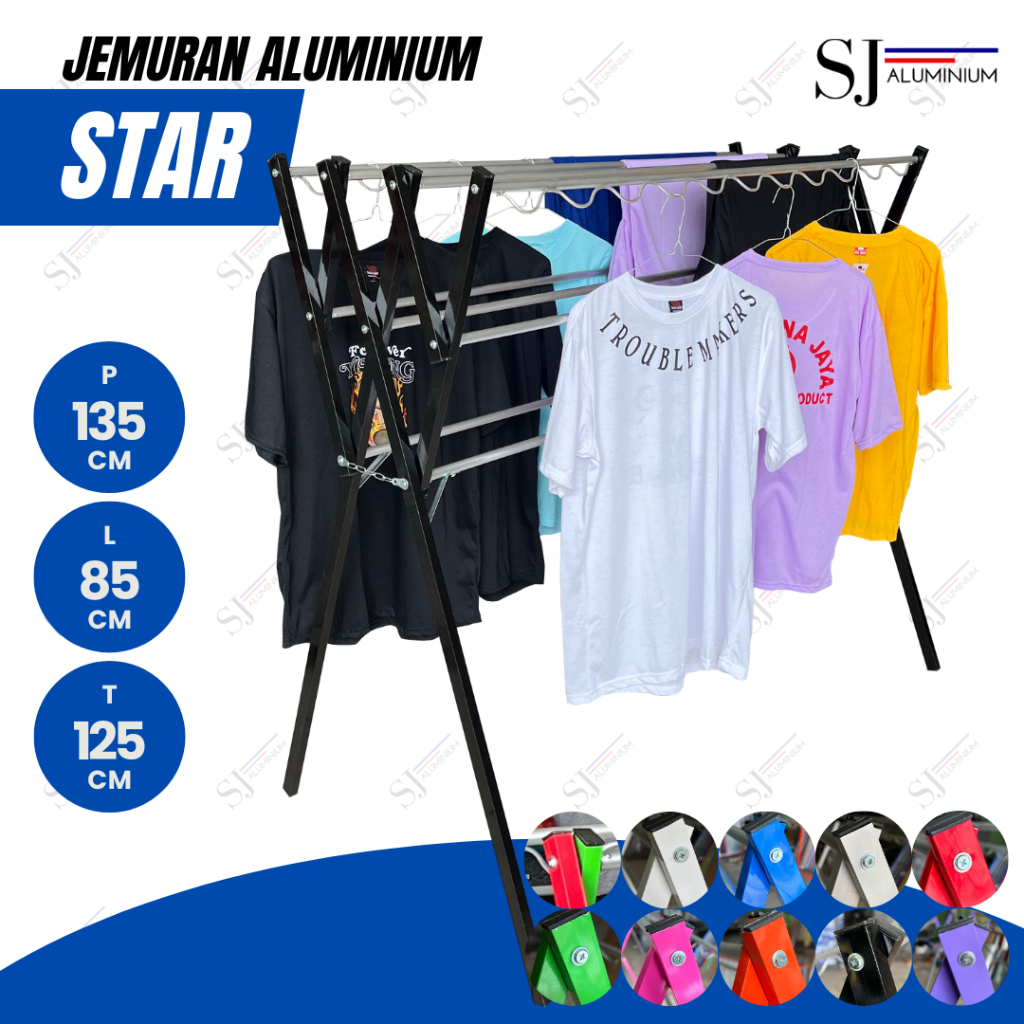 [STAR] - Jemuran Baju / Jemuran Pakaian / Jemuran Handuk Aluminium Hanger Lipat Warna - 135 CM